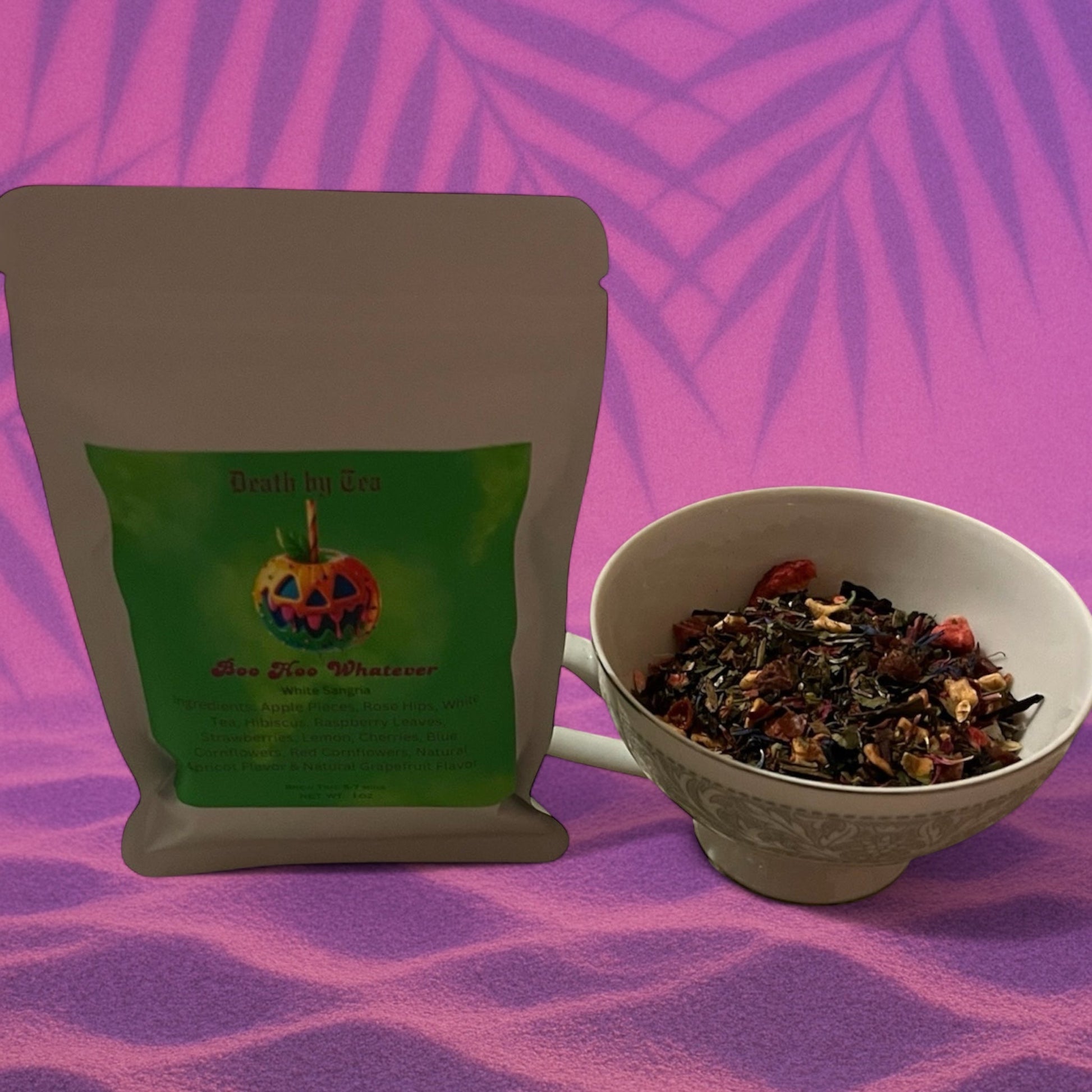 ♥️ Apple Pieces, Rose Hips, White Tea, Hibiscus, Raspberry Leaves, Strawberries, Lemon, Cherries, Blue Cornflowers, Red Cornflowers, Natural Apricot Flavor & Natural Grapefruit Flavor