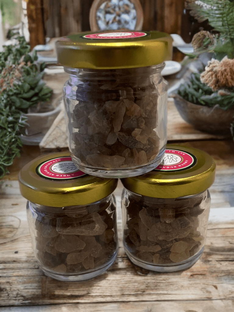 Add a touch of magic to your cup with Crimson Crystals—amber sugar crystals that sweeten your tea with a spooky, sparkly twist.