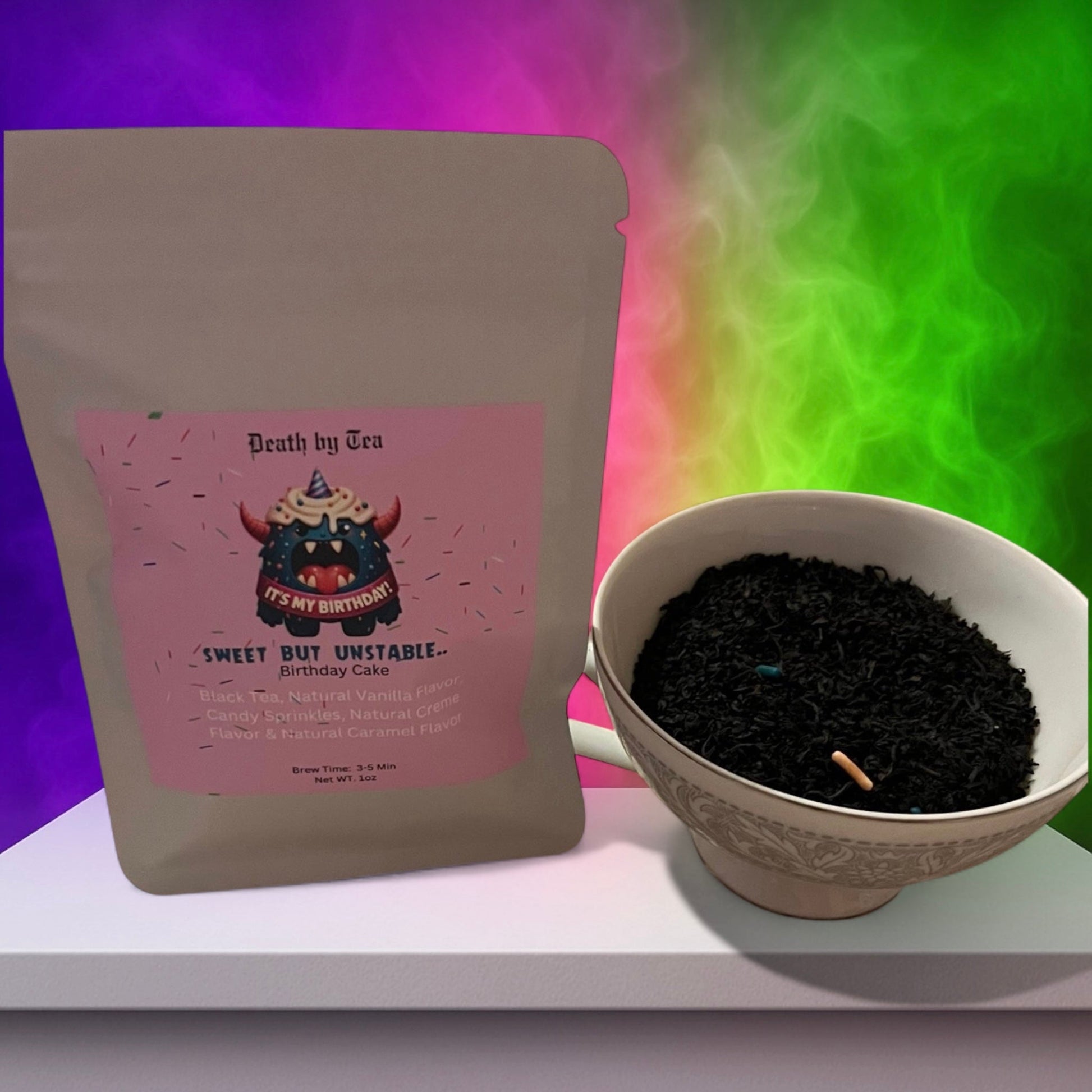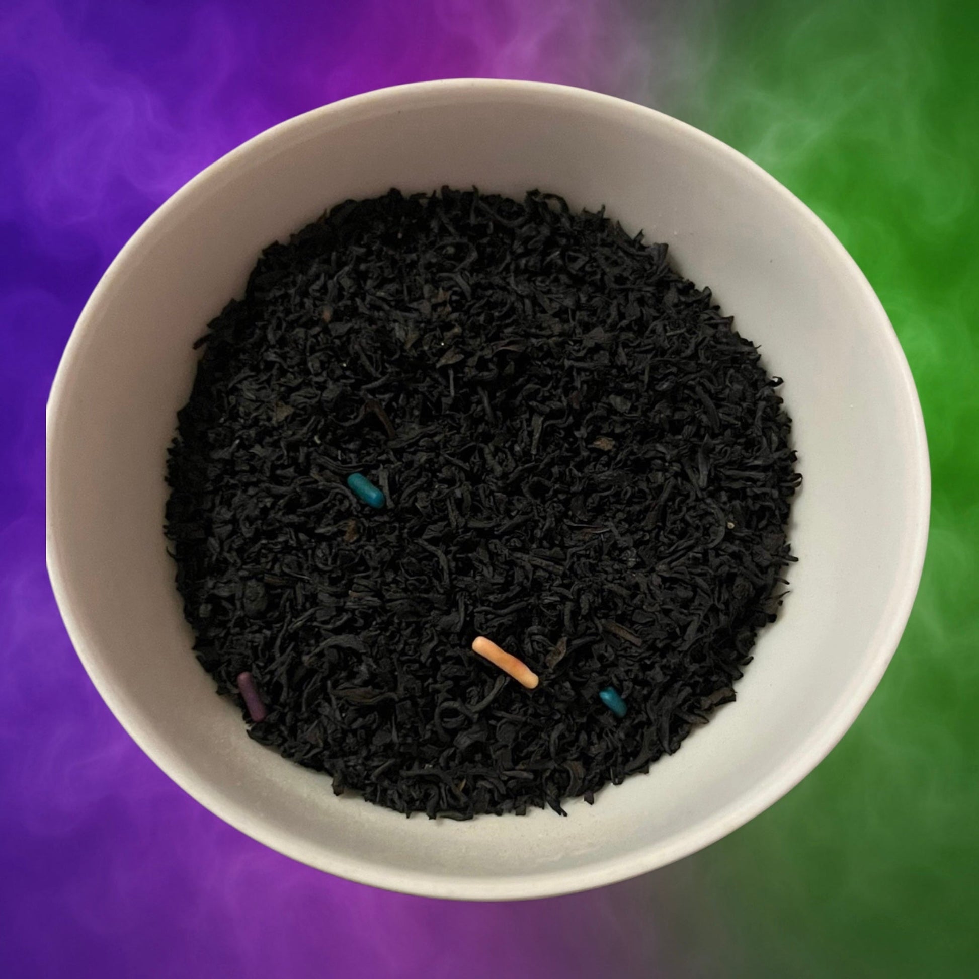 Frosted smiles hide chaotic vibes—this black tea is bursting with vanilla, caramel, and sprinkle-fueled mischief. It’s all fun and games… until the cake gets cursed.