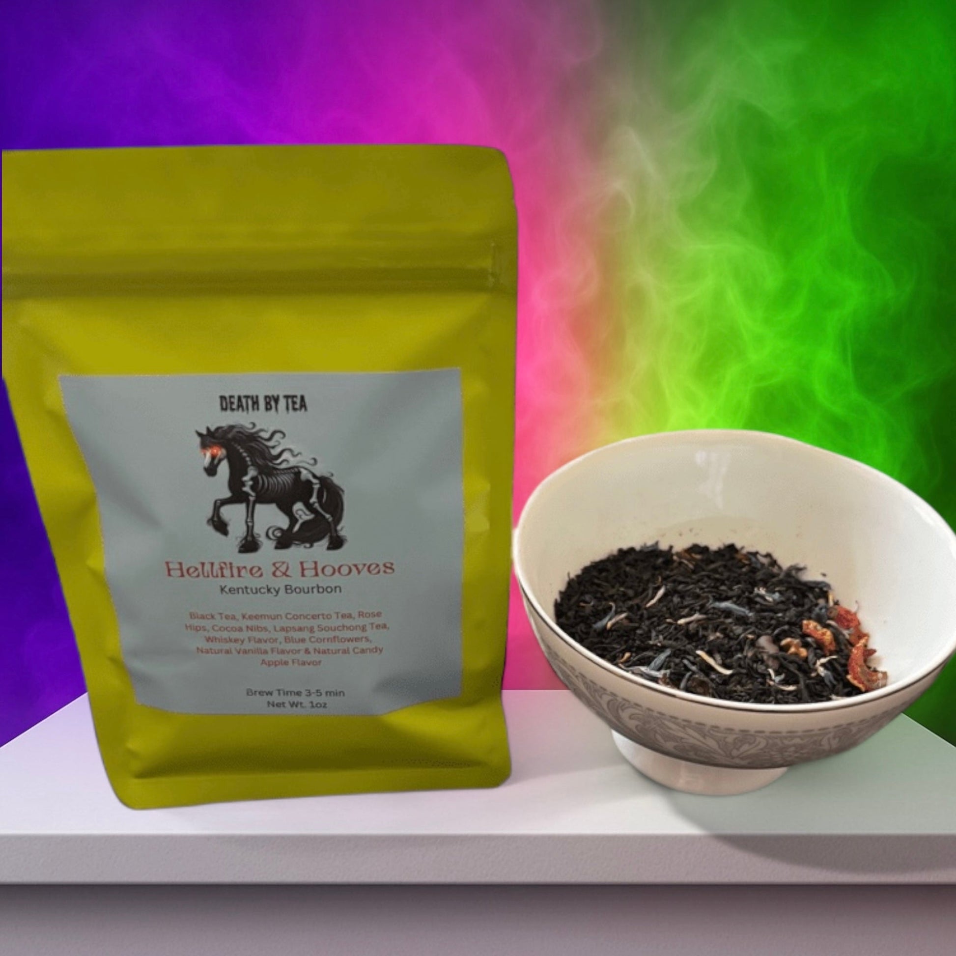 Unleash the bold spirit of the South with Hellfire & Hooves—our smoky, smooth Kentucky Bourbon loose leaf tea. A devilishly rich blend with deep caramel notes, a hint of oak, and a warm, fiery finish. Perfect for tea lovers who like a little kick in their cup!